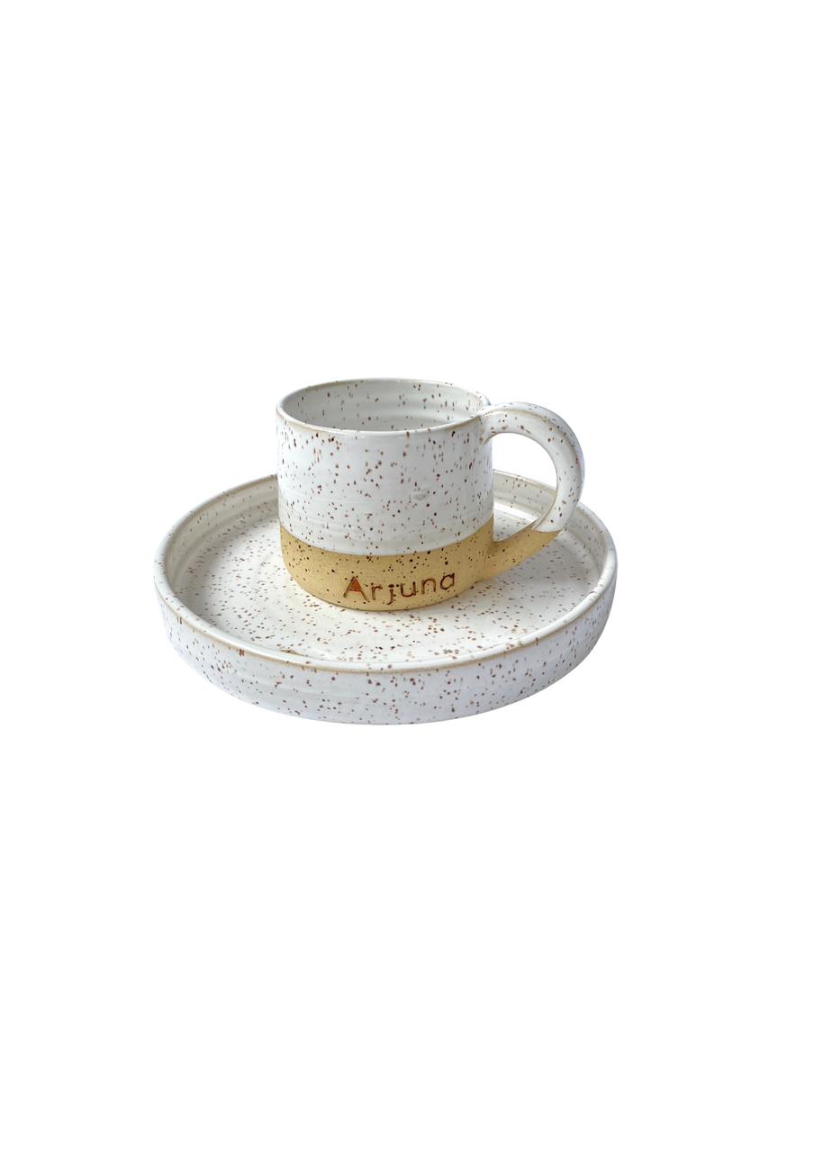 Xícara cerâmica feia a mão em alta temperatura com 180ml aprox. Pode ser personalizada com uma palavra de sua escolha ou logotipo em baixo relevo.